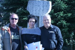 The officers meet in Germany: Sheik Richardson, Dagmar & Klaus Lumma in front of the Guardiano sculpture of IHP - Institute for Humanistic Psychology www.ihp.de